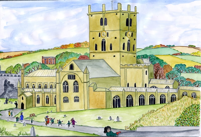 Friday afternoon arrived. After school dinners, all the children were put on to coaches and driven away to St. David’s. All the parents were to arrive at the cathedral by two o’clock. Peter and Sarah’s coach was the first to arrive at the Cathedral. All the children were marshalled out of the coach and into the beautiful church. As Sarah walked towards the front door, she thought she saw someone moving over by the ruins. No, it could not be, or could it? There was no time for a better look as her teacher ushered them to their seats at the front of the cathedral.